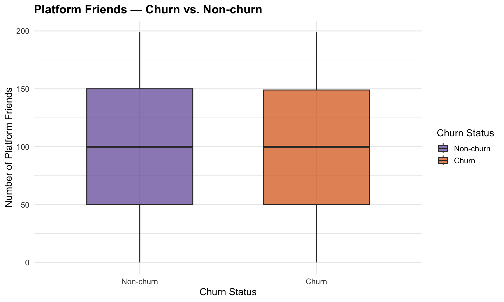 Customers, whether chruned or not, average around 100 friends on the platform, suggesting social connections alone does not drive churn.